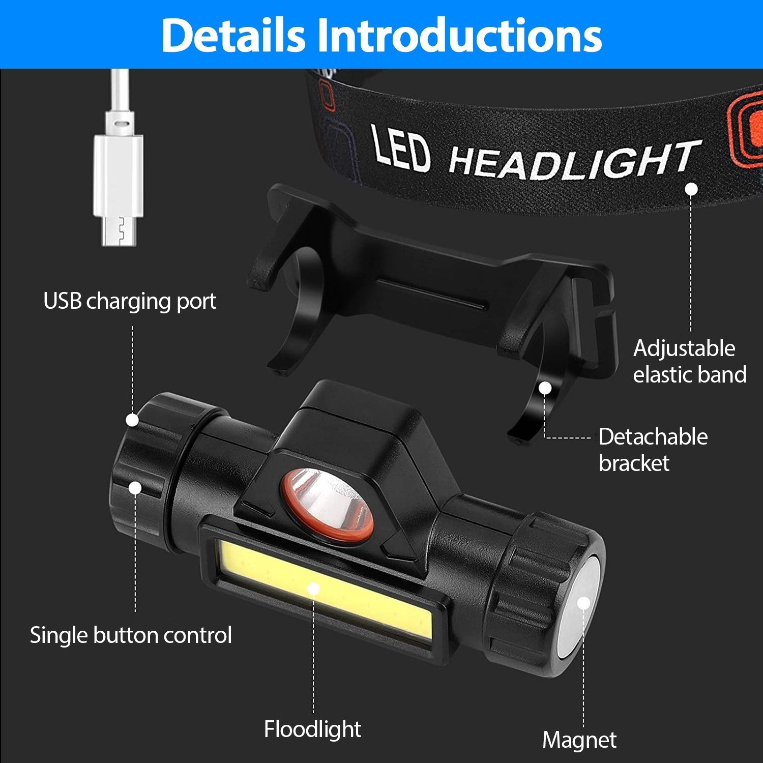 2 Packs Rechargeable Headlamp IPX4 Waterproof Headlight Flashlight
