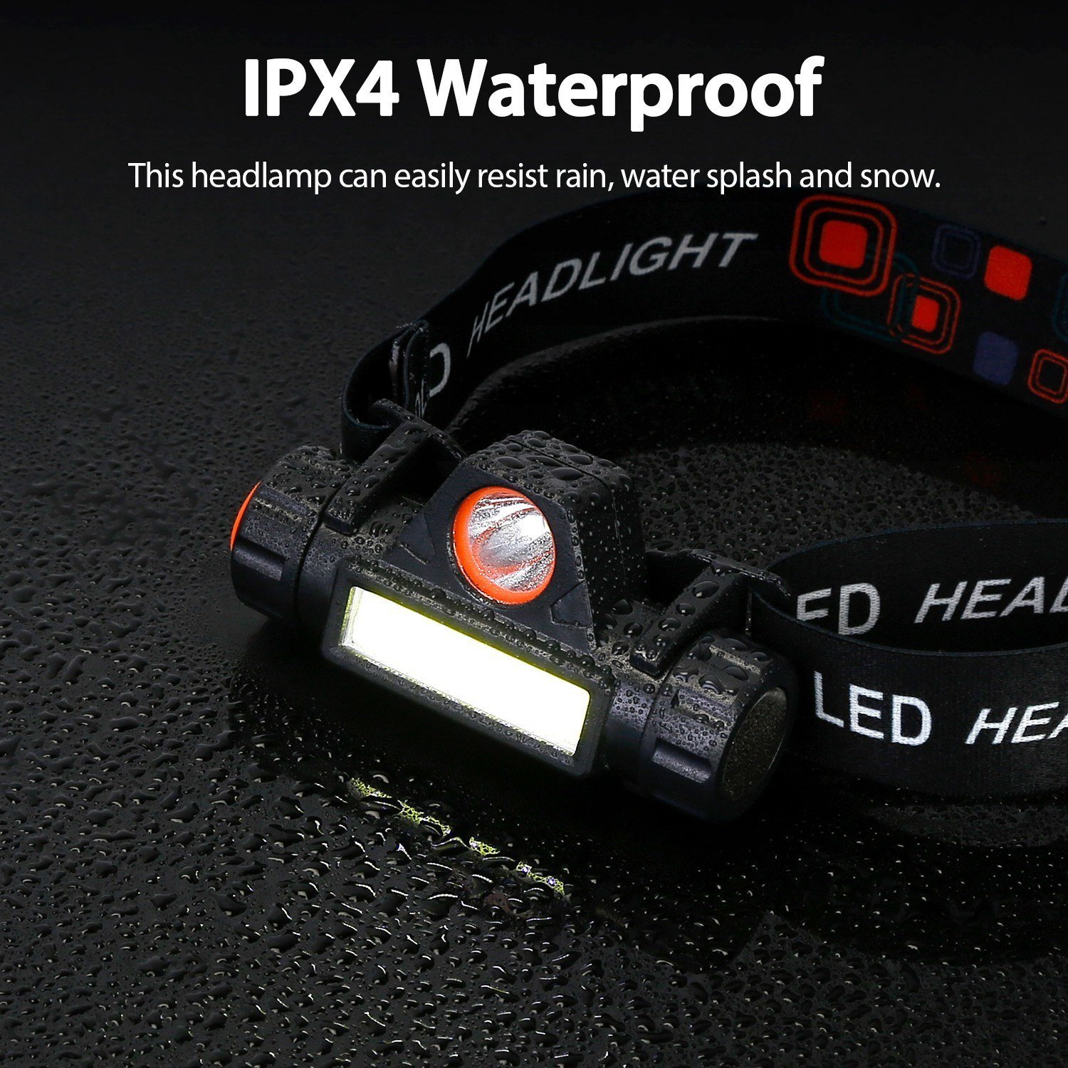 *IPX4 Waterproof Outdoor Headlight*:Reaching IPX4 waterproof rate; this headlamp can be used outdoors on rainy or snowy days. Suitable for camping; night running; hiking; and etc..
