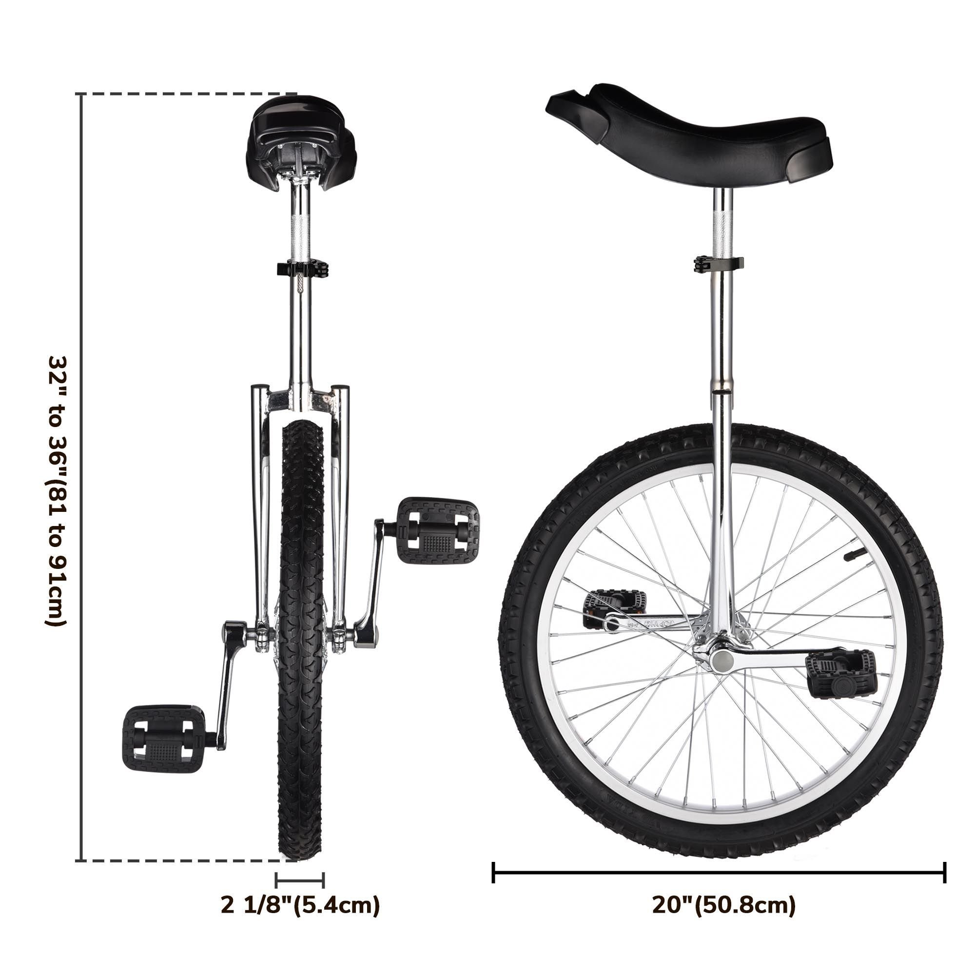 - Adjustable Unicycle Height: 32" to 36" (81.28 to 91.44 cm)