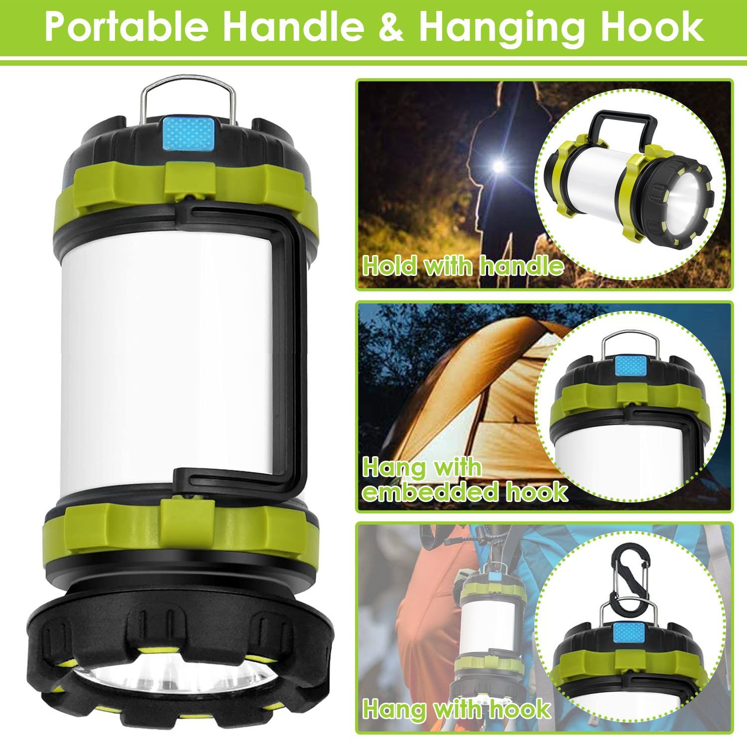 *6 Lighting Modes*:This camping lantern is equipped with 6 light modes; including high/low modes flashlight & lantern with extra red light(steady/strobe). Short press the switch button to cycle through various modes and meet diverse lighting requirements throughout the campsite. The lantern & flashlight is perfect for outdoor illumination or searching while the red light can be life savers in emergency.