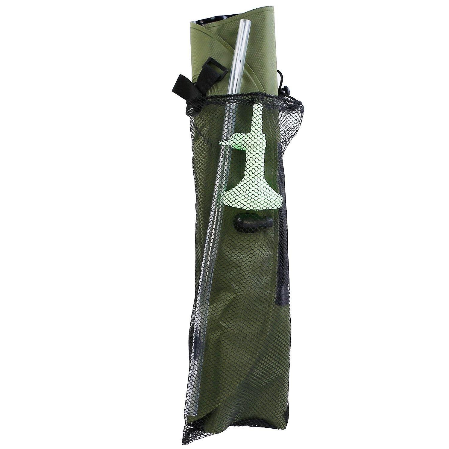 *Humanized Design*:The sturdy handle allows you to hang it on the tree for better heating effect. The strap close to the bottom can be used to fix the hose during shower. Besides; you can put toiletries in the mesh pocket for easy access. Fold it like a bag to save space when not in use.