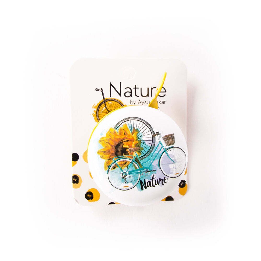 Collage artist Aysu Bekars work 'Nature' pattern is applied to the bicycle bell, cycling and nature-themed concept aims to raise awareness about moving and doing sports. The bicycle bell, which supports long and safe journeys by bicycle, is made of high quality and durable material and can be used for many years. On holiday, in summer, in the park, at the seaside, in the woods, the bicycle bell will add a vitality to your energy and will increase your passion for cycling!