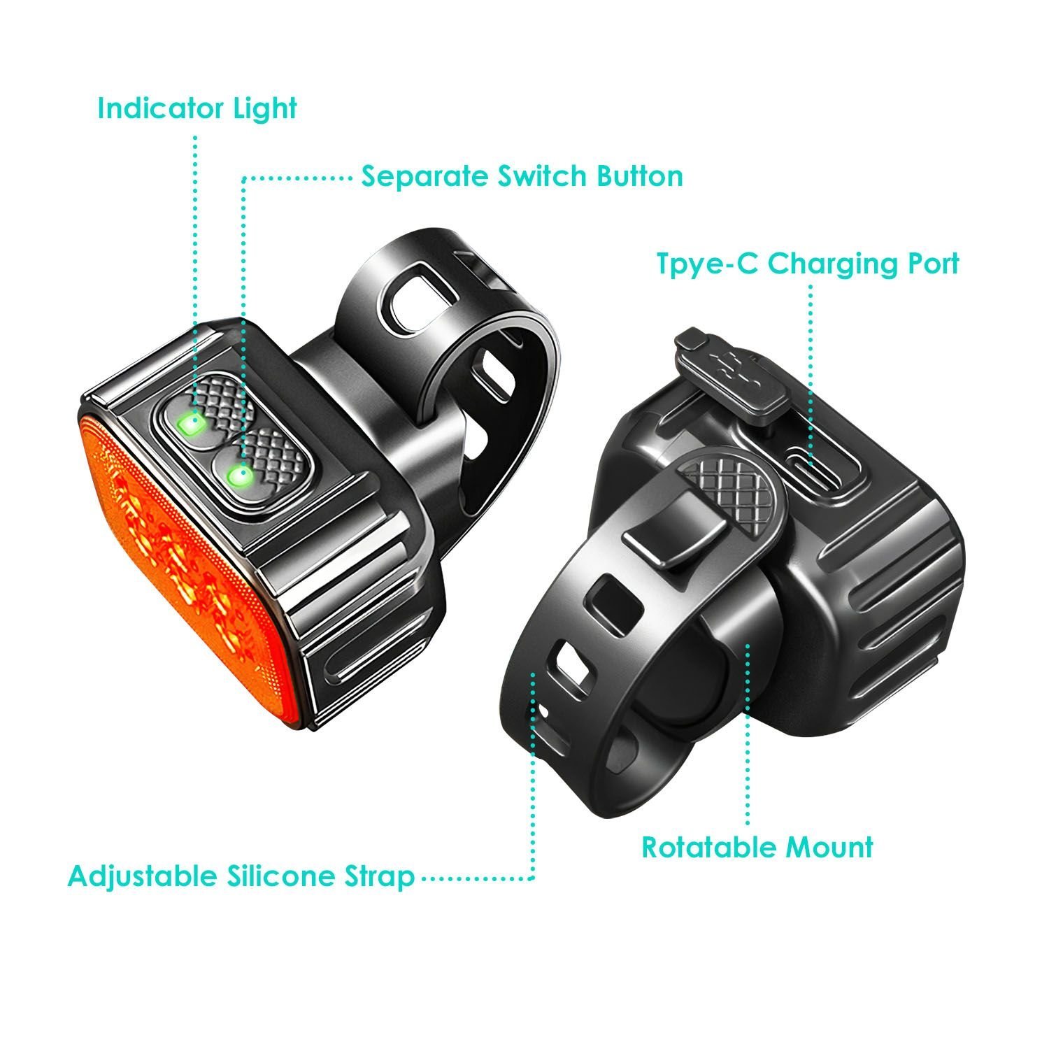 Tail Light Battery Powered:350mAh Rechargeable Lithium Battery Inbuilt