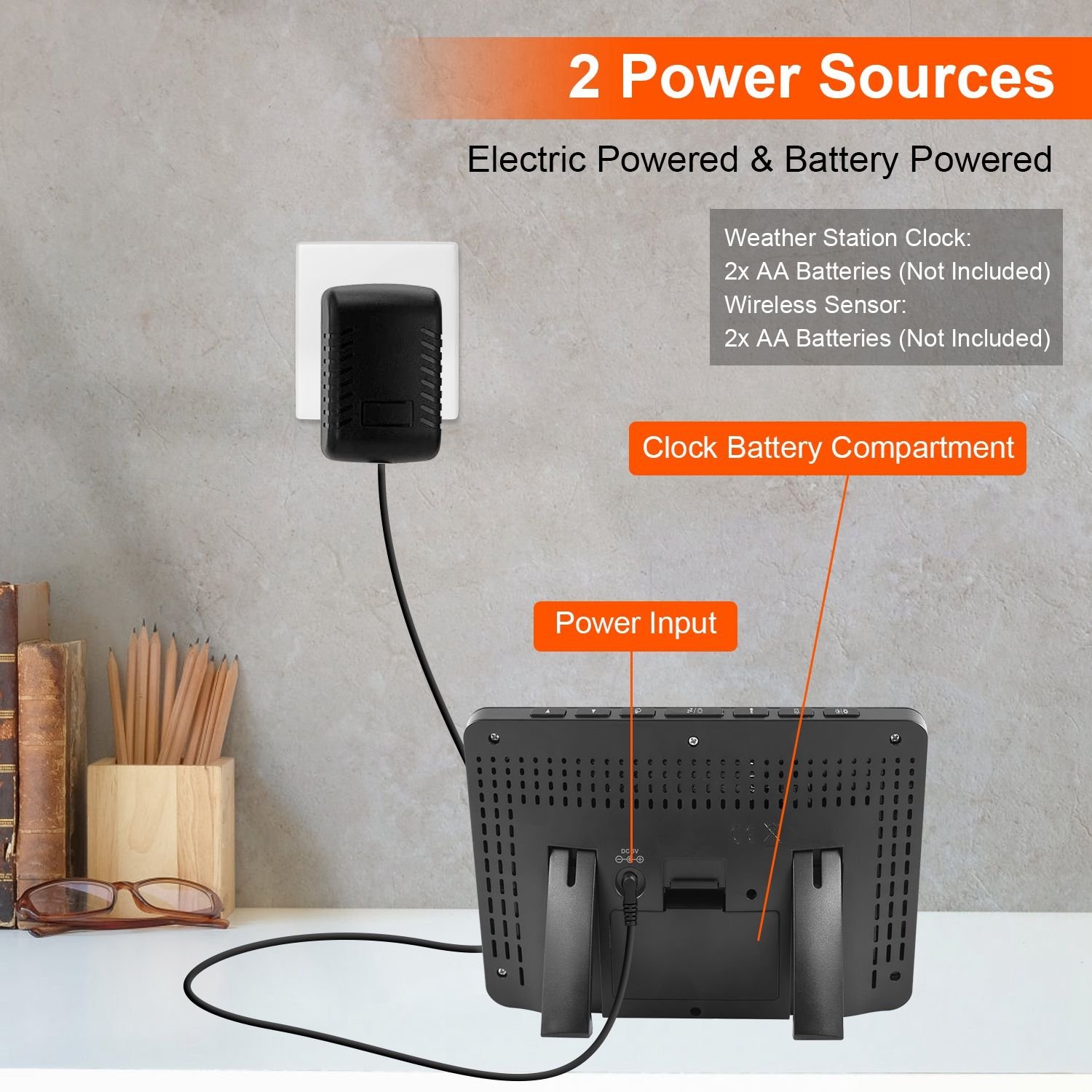5.Dual power sources give you the option to run the weather station clock by electric powered or battery powered
