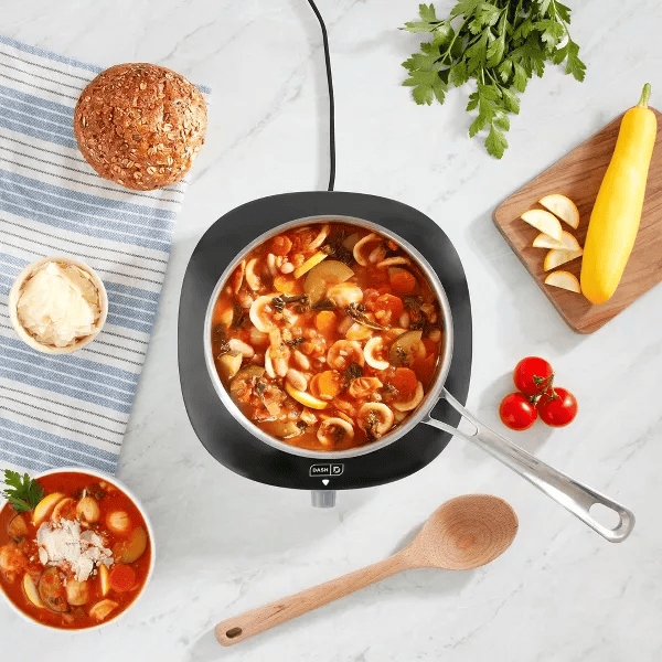 No range? No problem! The Dash Everyday Electric Cooktop is a compact cooktop that can act as an additional burner for your stove at home, or it can be the ideal cooking solution for your small living space. It’s made with tough ceramic glass, seven times as strong and durable as regular glass, and a quick infrared heating system will have you ready to cook in less time than traditional stovetop coils. And five temperature settings range from keeping dishes warm to boiling water, giving this versatile cooktop a home in any kitchen.