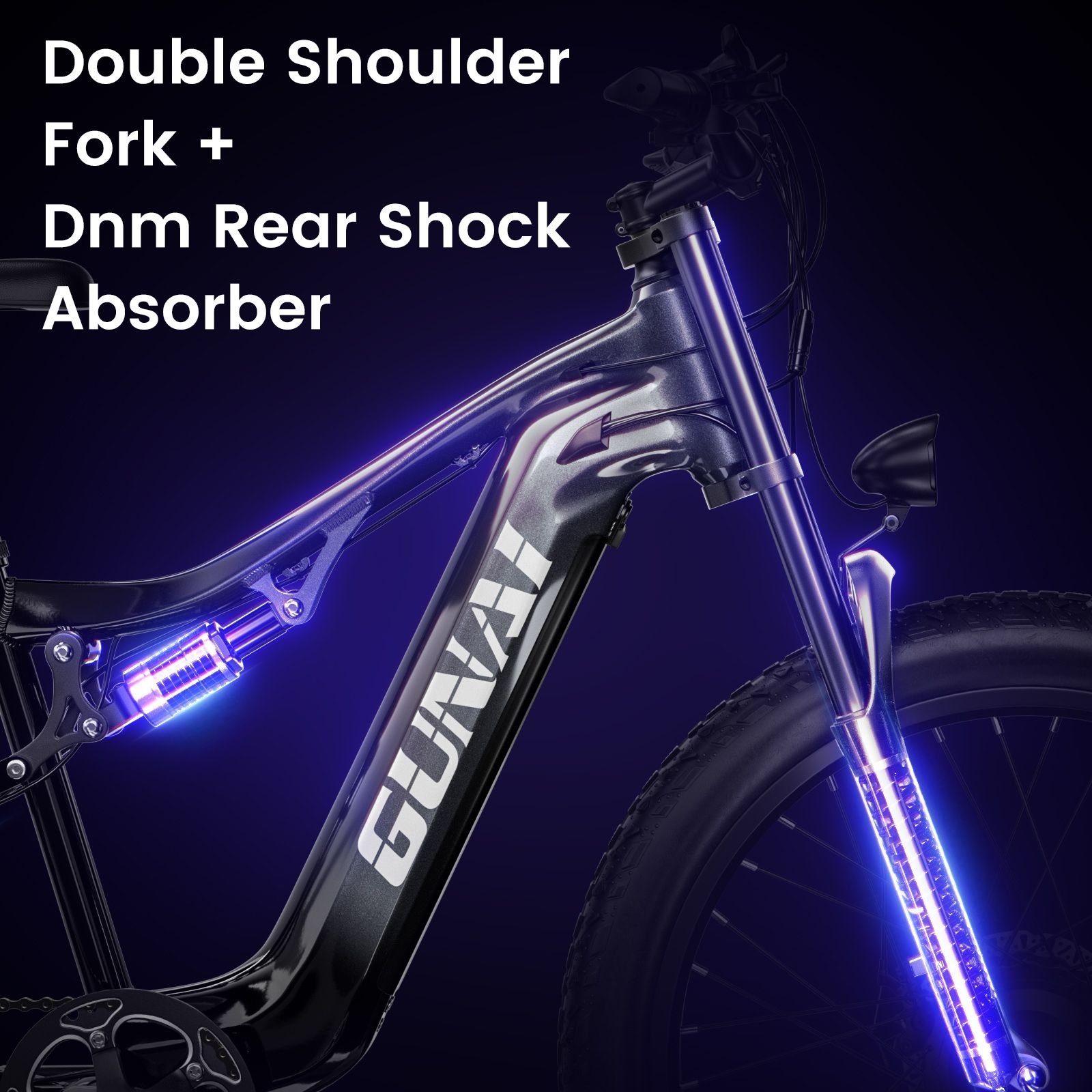 GUNAI 2000W Electric Bike for Adult Dual Motor GN68 with 48V 17.5AH Samsung Battery 26" Fat Tire Ebike Full Suspension Electric Snow Beach Bike