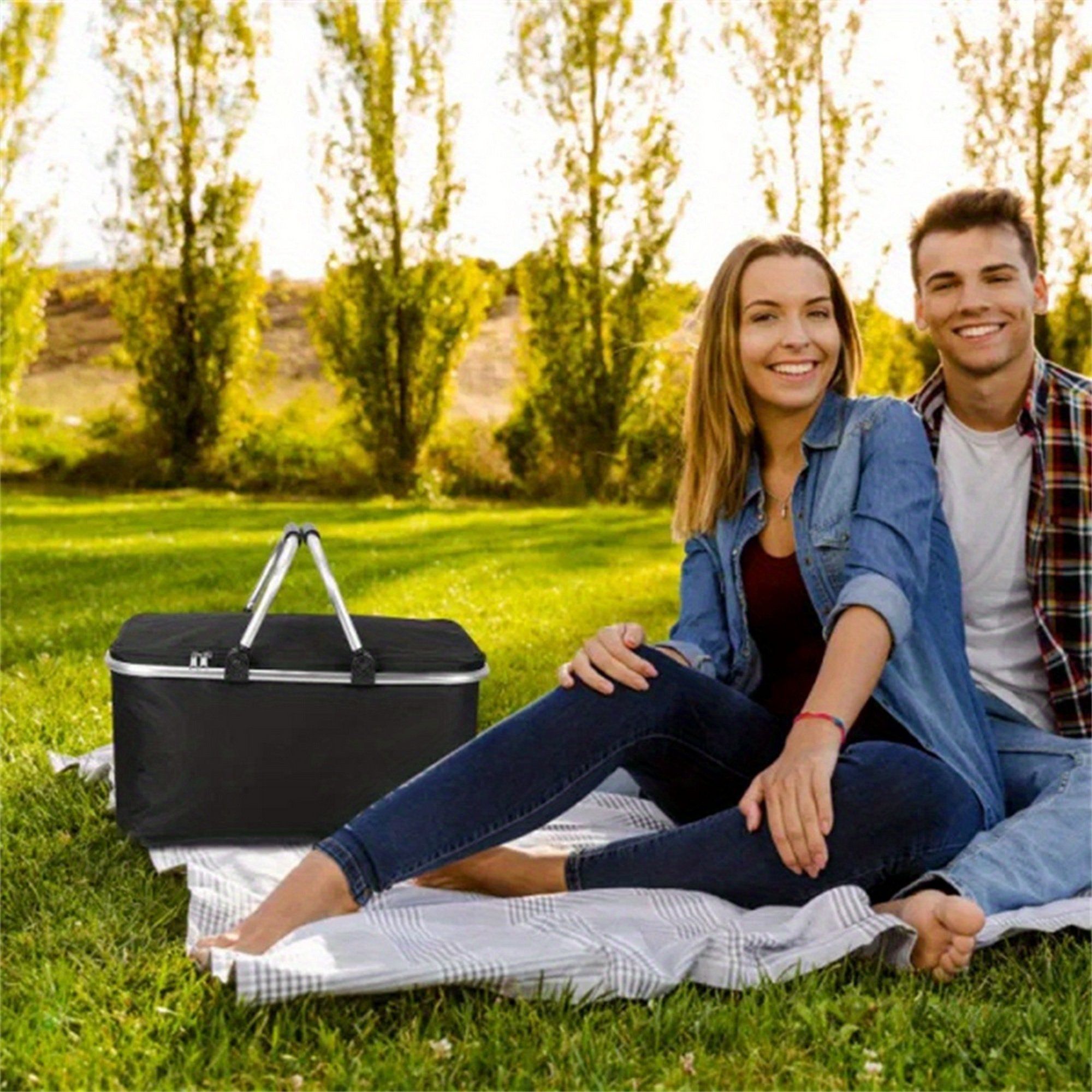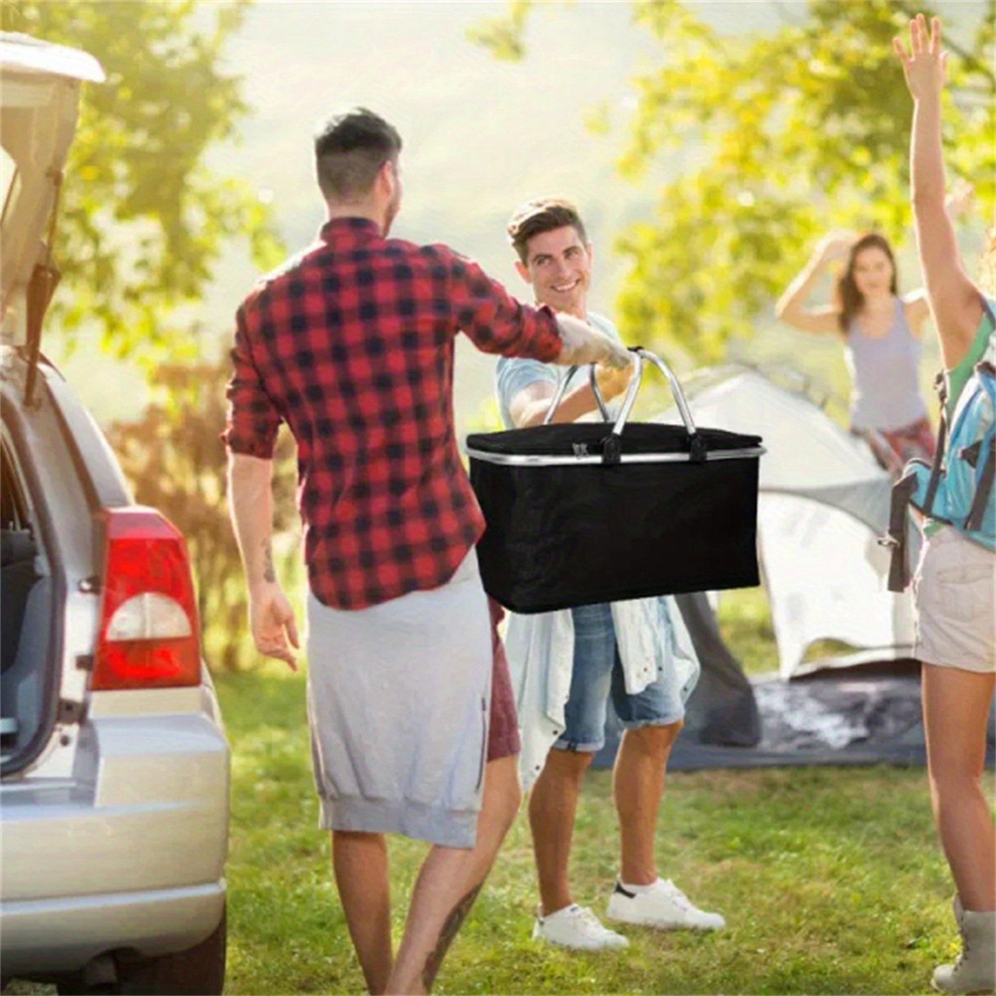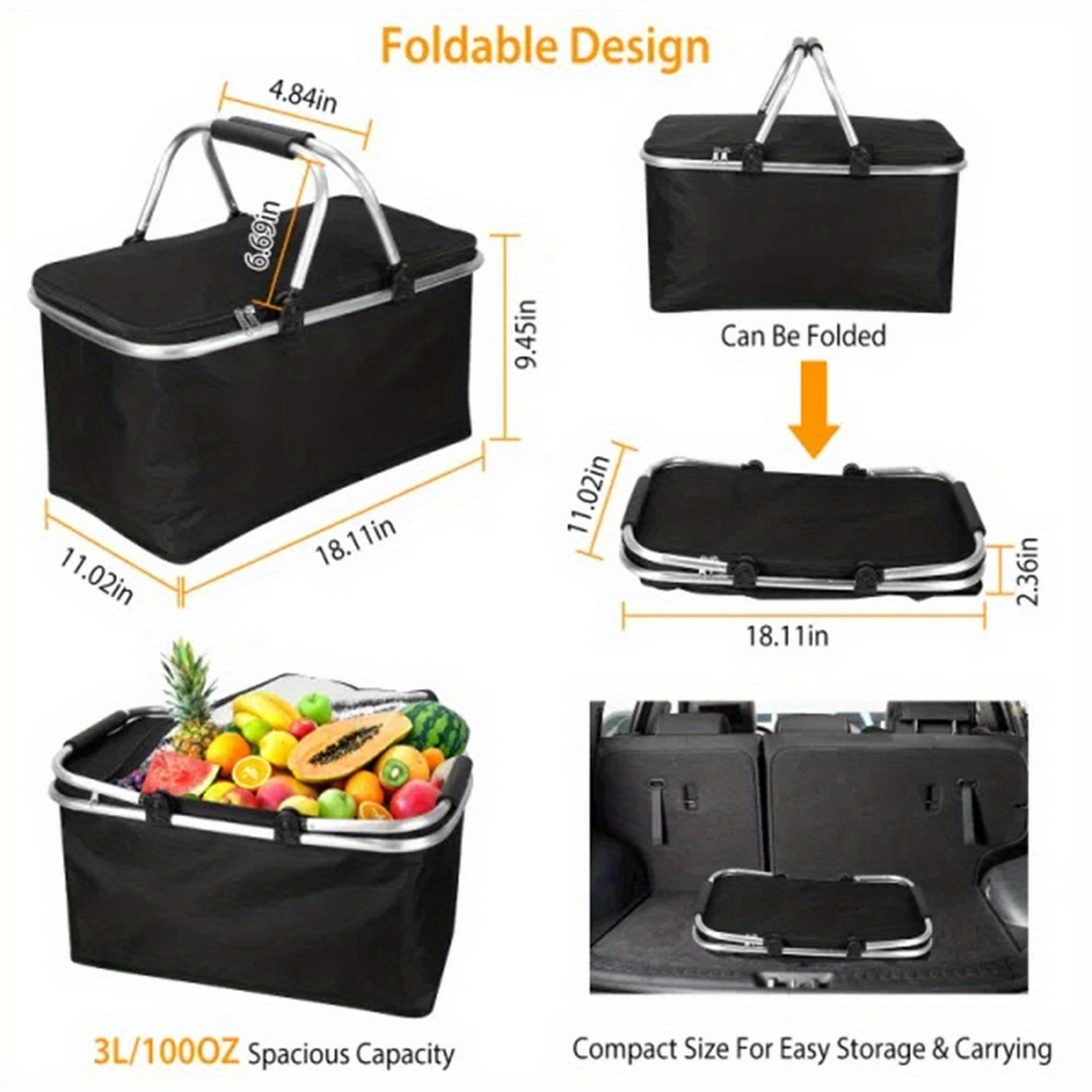 Large capacity insulated basket picnic bag picnic basket foldable shopping bag preservation bag lunch bag, Black