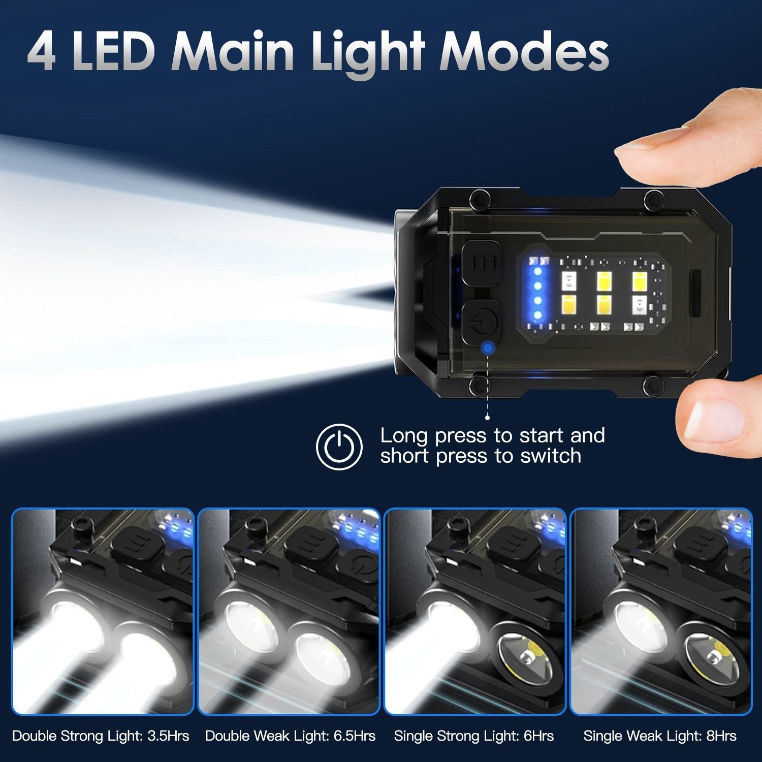 *4 LED Main Light Modes*:Our mini pocket keychain flashlight featured with 4 main light modes,including Single Strong Light,Single Weak Light,Double Strong Light and Double Weak Light. An extremely helpful assistant that caters to a variety of scenarios,such as hiking,camping,hunting,climbing,night walking,backpacking,caving etc..