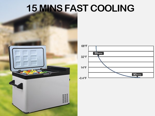 Efficient Cooling & Energy Saving: The fridge adopts advanced compressor cooling technology to complete rapid cooling from 90°F to 32°F in 30 minutes. And ECO mode is also set to ensure energy-saving and retention when going out.