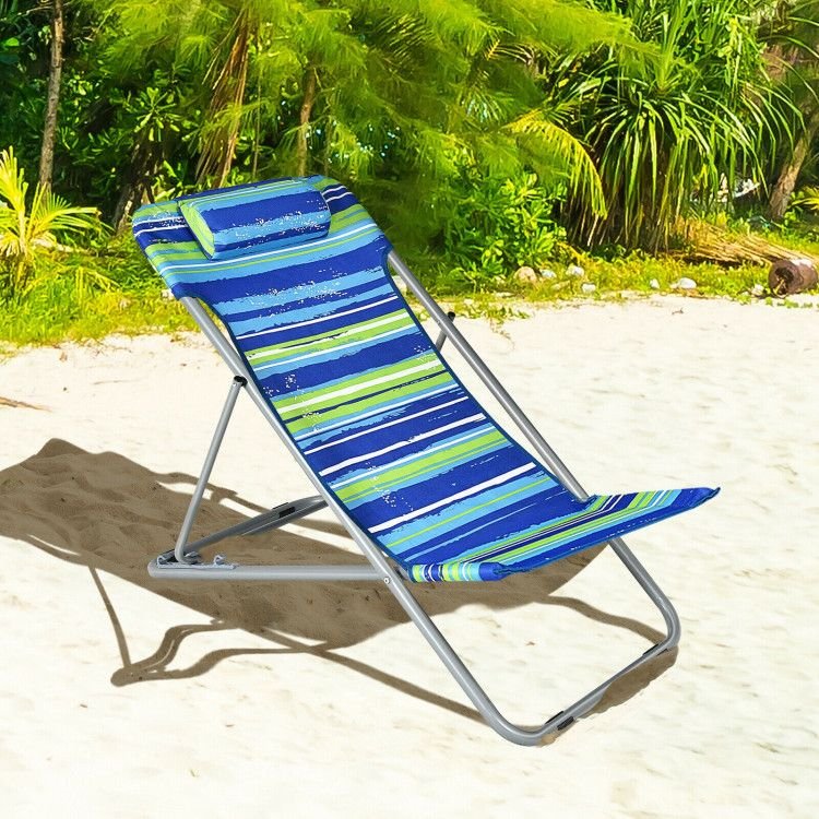 ● 3 Level Adjustable Incline: This beach chair features 3-position adjustable backrest and sponge-filled headrest, various incline angles greatly increase the comfort and release stress while reading, chatting, or taking a nap. Moreover, the lockable mechanism ensures enhanced stability.