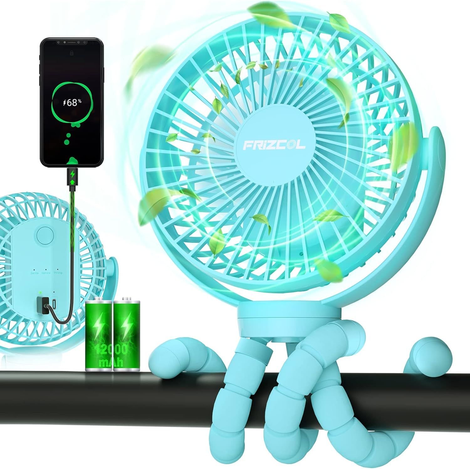 INCREDIBLE 65-HOUR BATTERY LIFE, USB RECHARGEABLE FAN: Our battery powered fan built-in 12000mAh rechargeable battery, its battery will last anywhere from 12 to 65 hours depending on the fan speed setting. Simply charge it through a USB port from a power bank, pc, hub, outlet, etc. This flexible tripod fan is compact, lightweight, and gives an impressive cooling effect.