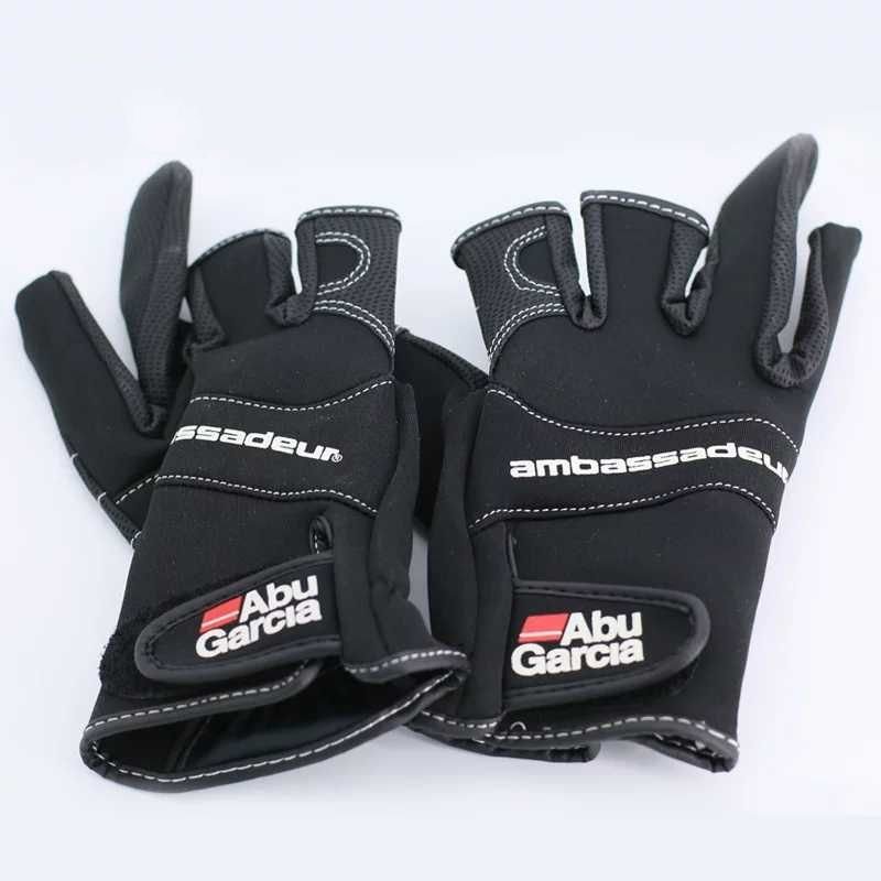 Home > ABU Garcia Fishing Gloves Three Fingers Cut Lure Anti-Slip Leather Gloves PU Outdoor Sports Fingerless Gloves 1Pair High-Quality