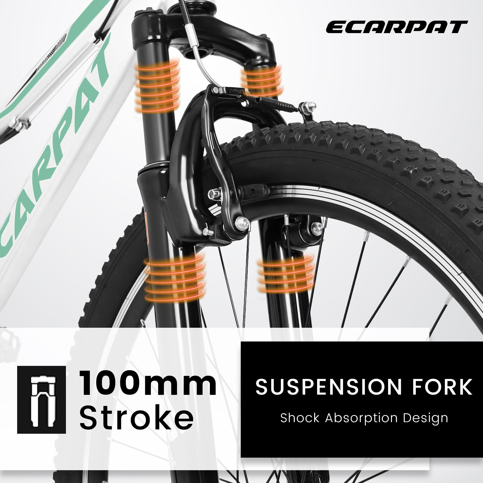[Powerful Dual Disc Brakes] Ecarpat mountain bikes feature a mechanical disc brake system that ensures safety. Front disc brakes can greatly reduce the braking distance and ensure that you can stop immediately in case of emergency. Safety always first.
