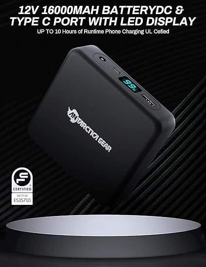 CARBON FIBER HEATING ELEMENTS: Heat quickly in 3 seconds, 5 carbon fiber heating elements generate heat across core body areas (front, arm area, and back) boosting your core body heat and keeping you warm. 12V Huge Capacity 16000mAh UL-Certificated power bank(packaged) No need to worry about battery life and temperature.