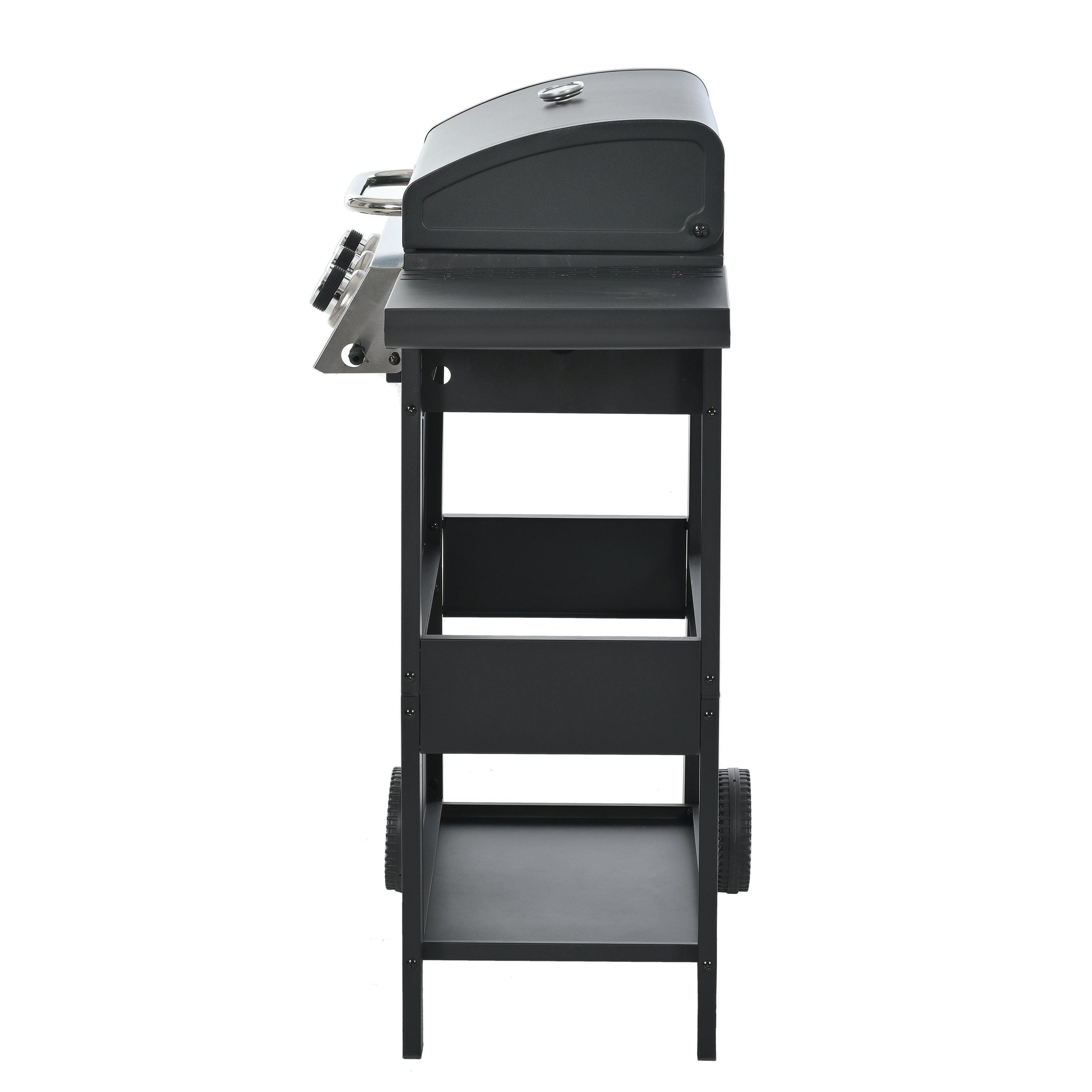 CONVENIENCE: The whole Stainless steel control panel with chromium plating control knob makes this propane gas grill more study and delicate, a stainless steel handle and a built-in stainless steel thermometer on the cover lid, two tables and two wheel casters for storage and moving