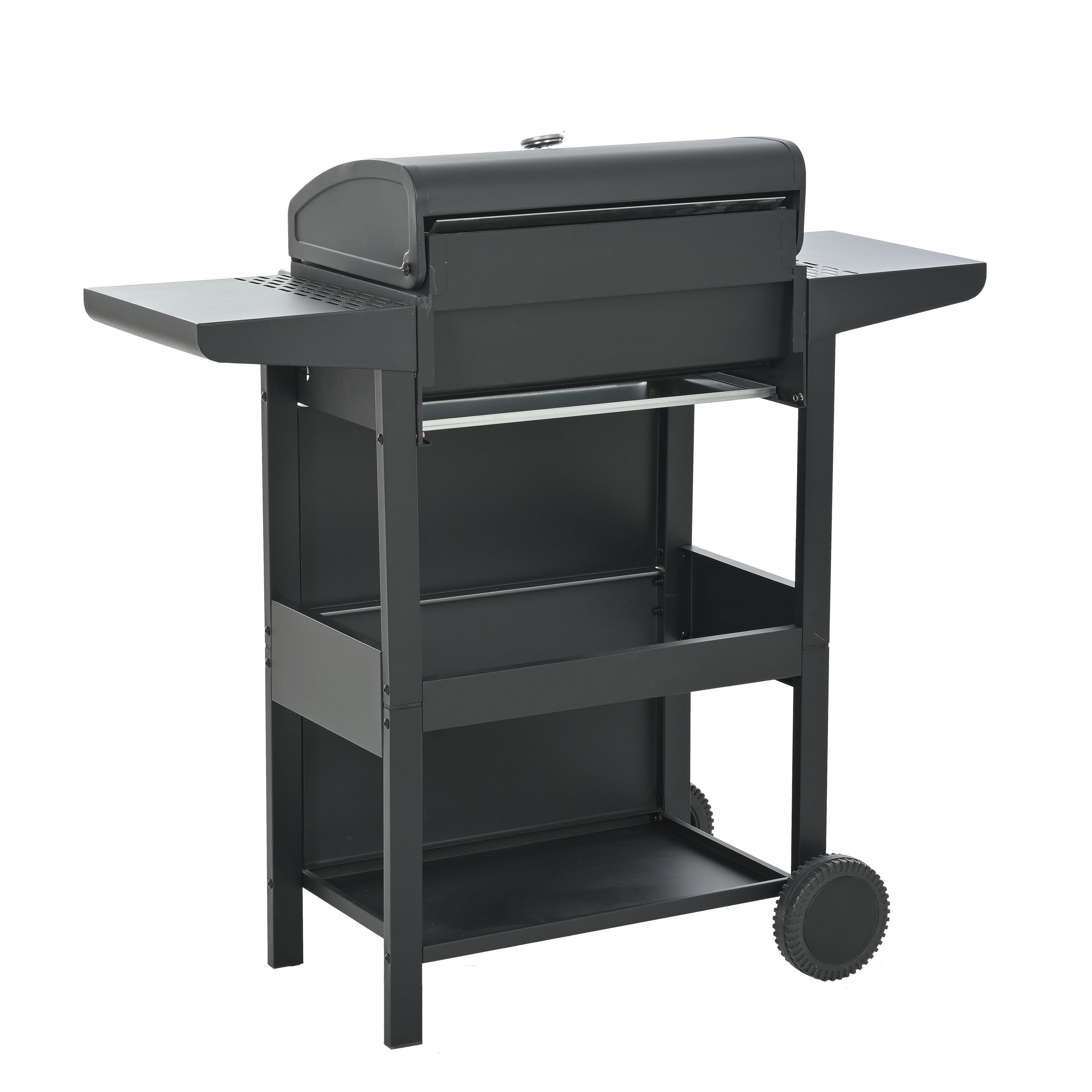 CONVENIENCE: The whole Stainless steel control panel with chromium plating control knob makes this propane gas grill more study and delicate, a stainless steel handle and a built-in stainless steel thermometer on the cover lid, two tables and two wheel casters for storage and moving
