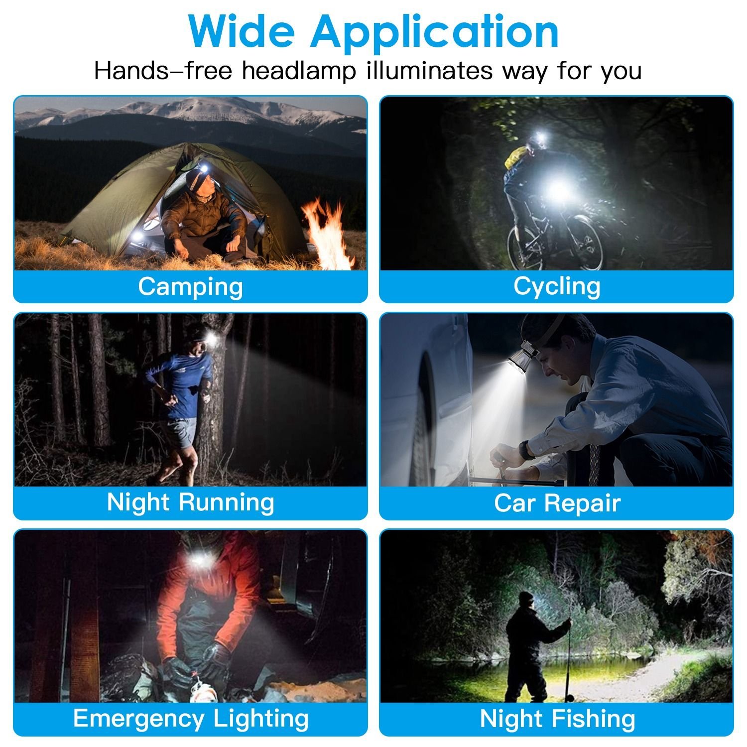 *USB Rechargeable Heamlamp*:Built-in 1200mAh lithium battery allows you to use the headlight about 3-5 hours(According to different mode) after 4-6 hours fully charged with our 18.5in Type-C cable. Easy to charge with any USB-port charging devices.