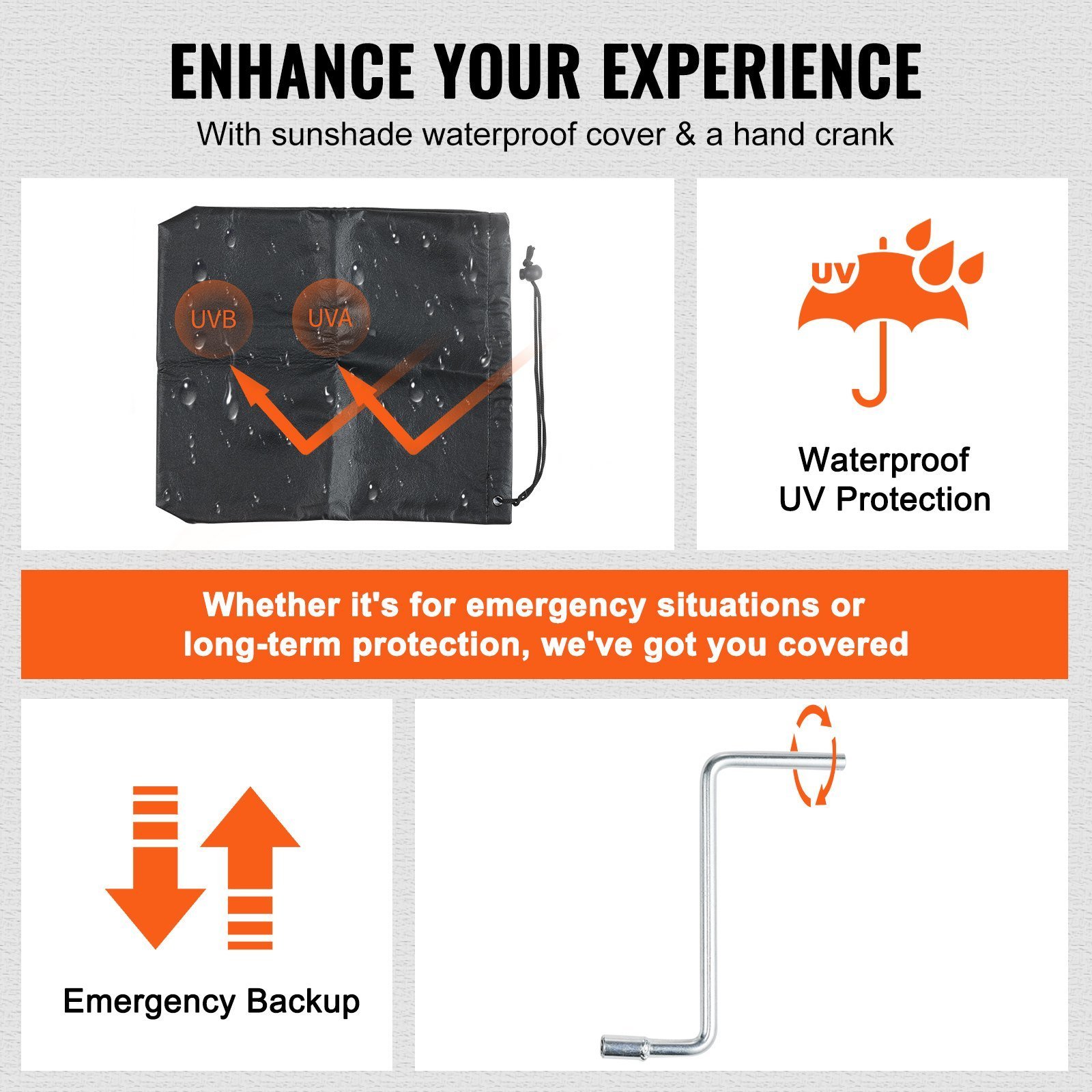 VEVOR power trailer jack with a load capacity of up to 4000 lbs. Crafted from durable carbon steel with a rust-proof coating, this RV electric jack ensures long-lasting performance even in harsh conditions. Suitable for yacht trailers, RV trailers, horse trailers, and utility trailers.